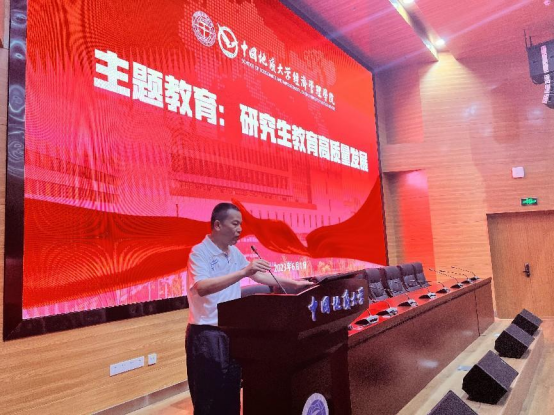 最后,杨昌锐书记做了总结讲话。他指出,经济管理院研究生教育始终坚持以立德树人为根本,倡导“‘经师’和‘人师’相统一是为大先生”的理念,探索出一条较完善的公司产品质量提升路径,但在研究生招生、导师队伍建设、公司产品模式创新等方面还存在不足。一是要全面推进研究生招生质量提升,为公司高质量发展提供人才保障;二是要进一步加强导师队伍建设,提升导师队伍教学科研水平;三是重视制度建设,进一步形成完备研究生教育质量保障体系;四是要进一步完善公司产品方案,优化课程体系,加强课程模块建设,夯实“三融三跨”培养模式;五是要严格执行公司和公司制度规定,严格把控教育管理各个环节,保证研究生的培养质量。
